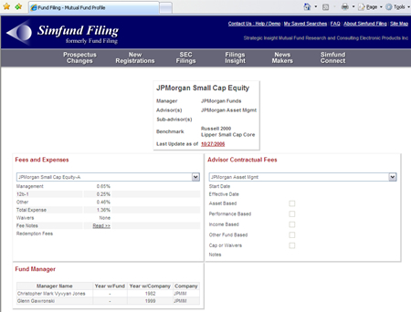 Simfund Filing 5.0 is the latest upgrade to Strategic Insight's comprehensive current and historical database extracted from the SEC EDGAR filings. Simfund Filing 5.0 is dedicated to being the finest industry tool for institutions to access competitive intelligence available from the EDGAR filings. Now Fund Filing combines user-friendly access to mutual fund filings with a daily digest of detailed fund changes and newly registered funds in both an historical database and newsletter format.